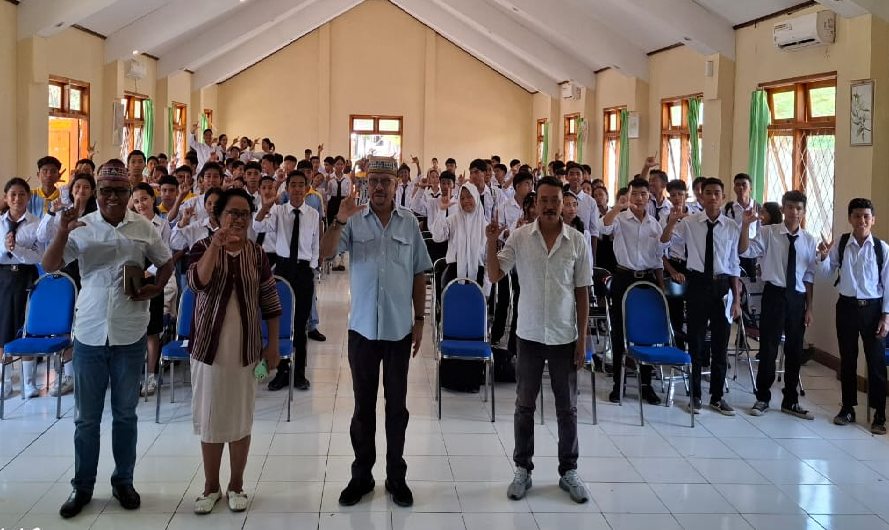 Ketua Fraksi Partai Golkar MPR RI Melchias Markus Mekeng bersama peserta sosialisasi empat pilar kebangsaan di SMAN I Komodo, Manggarai Barat/Foto: Herman hayon