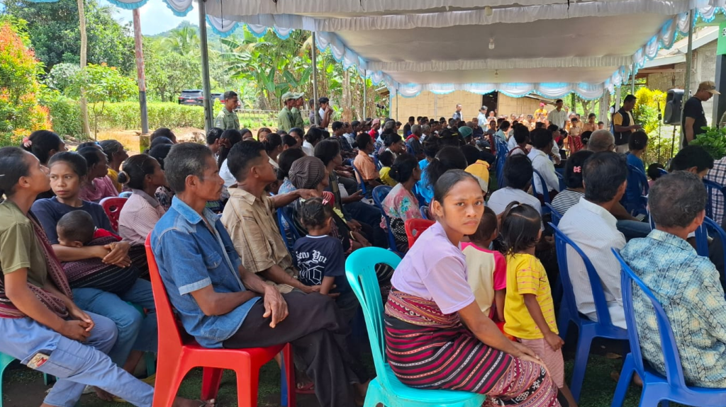 Warga masyarakat Desa Kolidetung dan Desa Hepang, Kecamatan Lela, Kabupaten Sikka, Nusa Tenggara Timur mengikuti kegiatan sosialisasi empat pilar yang digelar oleh Ketua Fraksi Partai Golkar MPR RI Melchias Markus Mekeng, Selasa, 30 Desember 2025/Foto:Herman Hayong