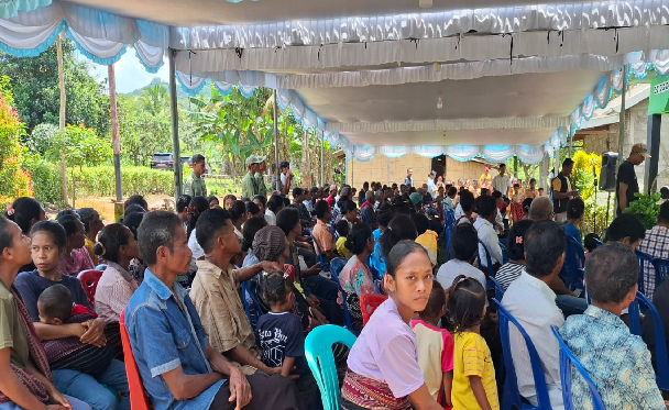 Warga masyarakat di Kelurahan Sandominggo Larantuka mengikuti kegiatan sosialisasi Empat Pilar Kebangsaan Indonesia yang dengan narasumber Ketua Fraksi Partai Golkar MPR RI, Bapak Melchias Markus Mekeng/Foto: Herman Hayong
